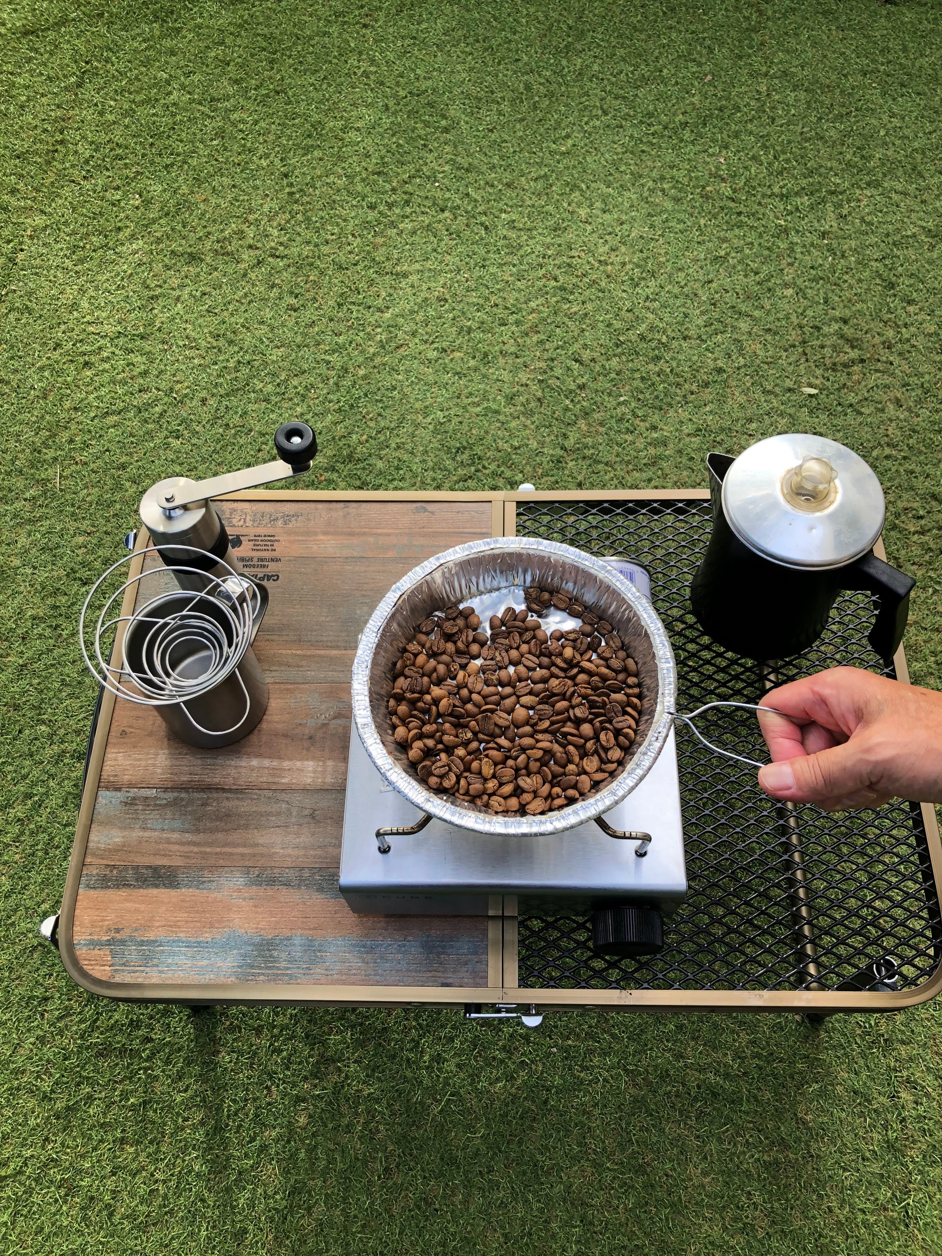 カセットコンロやキッチンのコンロで数分炙って頂くだけですぐに焙煎豆を作る事ができます。