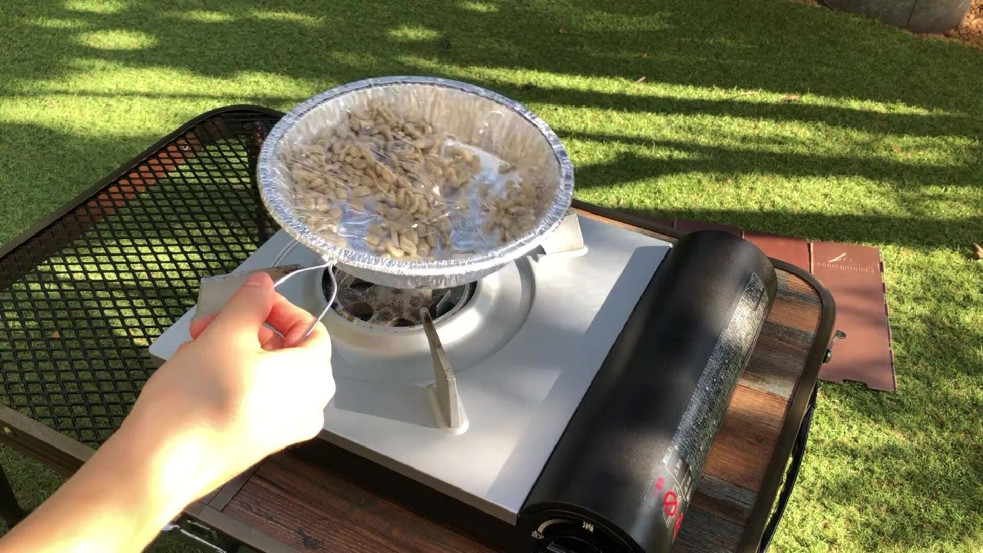 カセットコンロやキッチンのコンロで数分炙って頂くだけですぐに焙煎豆を作る事ができます。